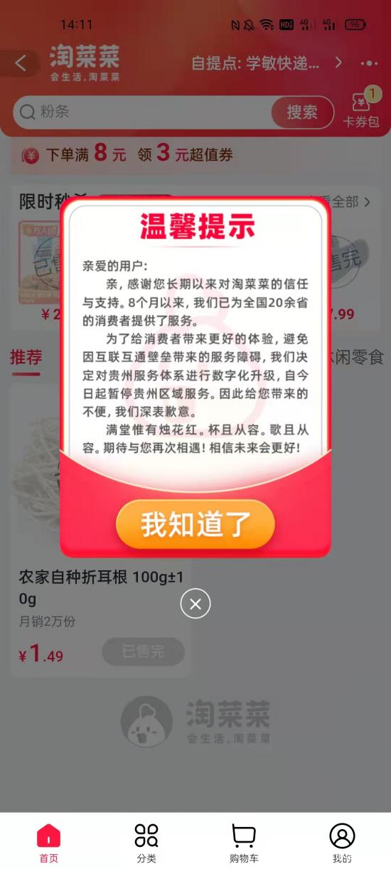 暫停貴州區域服務,淘菜菜或許有不得已的苦衷。