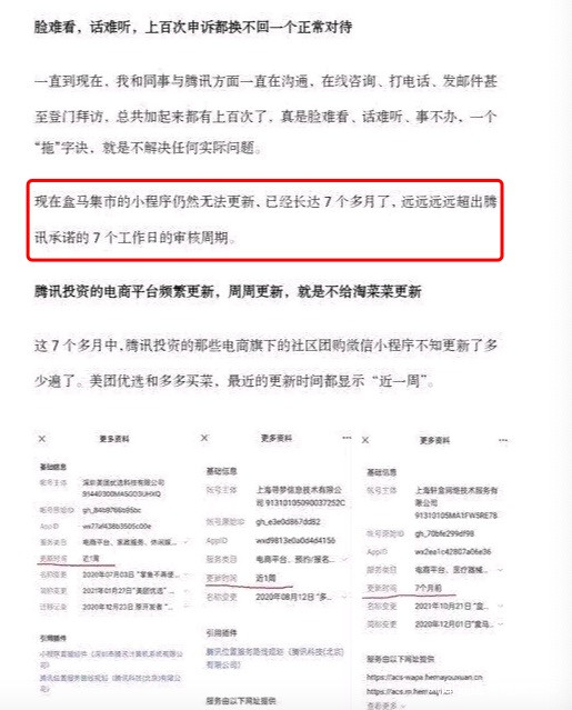 據阿里程序員在脈脈爆料稱,他在3月31日就申請盒馬集市小程序更新版本,直到現在卻還在“審核中”。而在此前,小程序更新申請一般一天就能通過審核。