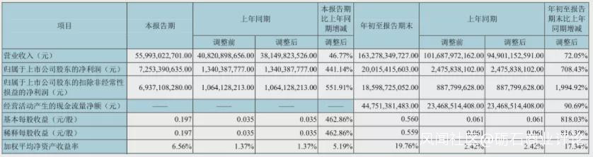 近日,京東方披露了2021年三季度報告。數據顯示,京東方前三季度實現營收1632.78億元,同比增長72.05%;歸母淨利潤200.15億元,同比增長708.43%。其中,第三季度公司實現營收為559.93億元,同比增長46.77%,歸母淨利潤為72.53億元,同比增長441.14%。