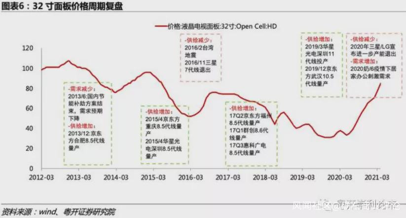 面板行業還具有“後發優勢”的這一特徵,逆週期投資一直是追趕者超越領跑者屢試不爽的法寶。因此,即便行業處於景氣度低迷週期,仍會有企業大幅增加資本開支,並以巨大虧損的代價來實現追趕。因此,供給的“非理性”增長很容易打破行業供求平衡,供需永遠無法“完美匹配”。