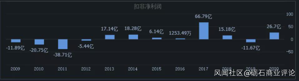 歷年財報數據顯示,在上一輪面板景氣度高點時,京東方A扣非淨利潤曾高達66.79億元,但至2019年,公司扣非淨利潤則出現11.67億元的淨虧損,業績波動幅度劇烈。