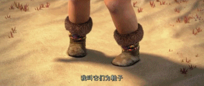 ▲《瘋狂原始人》截屏/蓋給伊芙穿他自制的鞋子