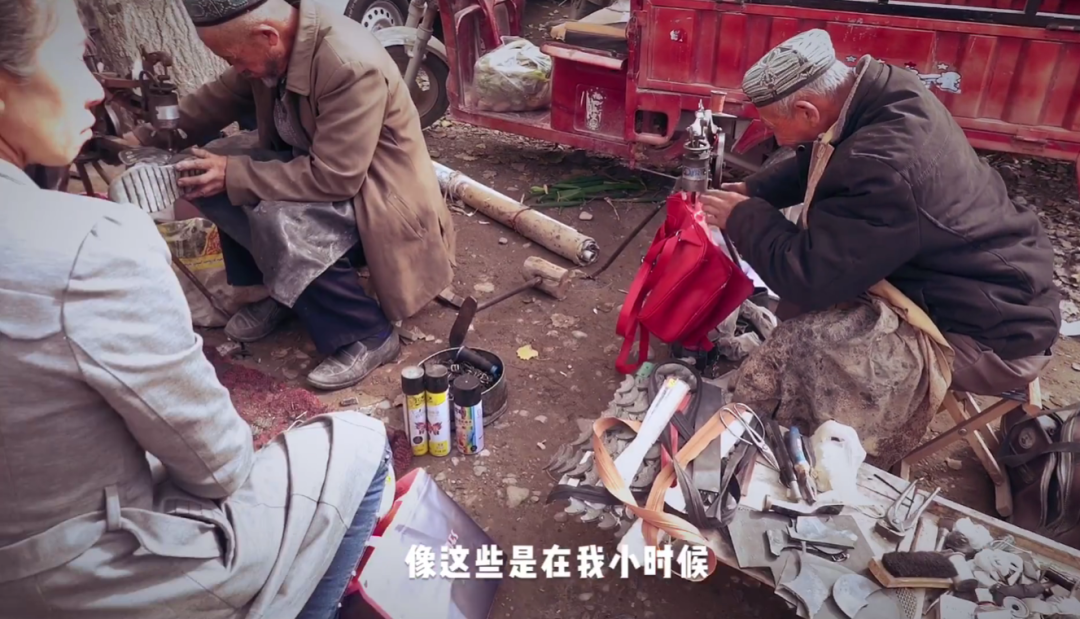 有次,我偶然地發現家門前的巴扎街道最尾處仍有一位老爺爺堅持開這一“特色”店鋪,他埋頭幹活,動作依舊靈活嫺熟,與坐在長椅上的顧客們侃侃而談。