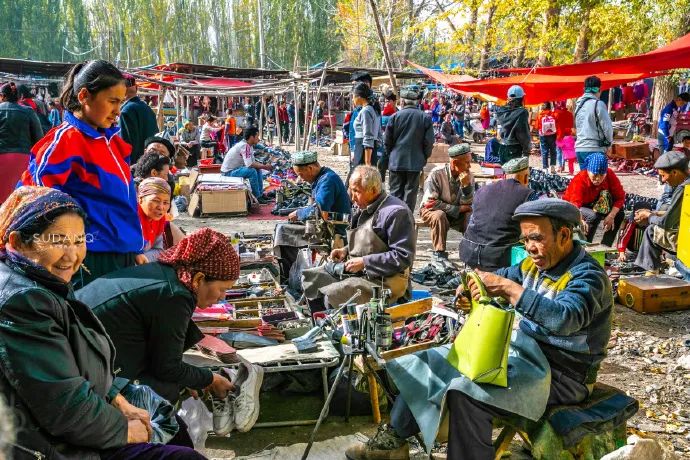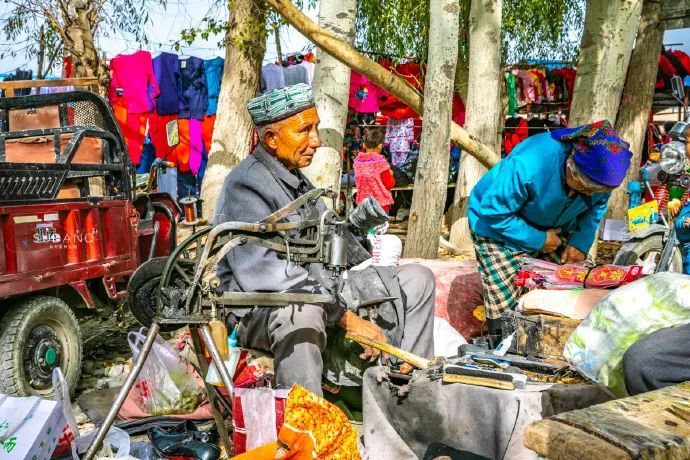 印象中,聚集在“露天修鞋鋪”的三三兩兩人和那條巴扎的街是格外得熱鬧。