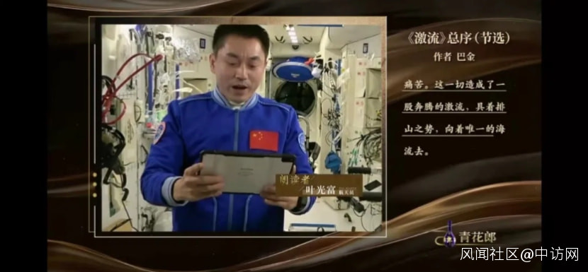 青花郎『朗讀者』天外之音 神舟13號乘組激昂朗讀巴金『激流』_風聞