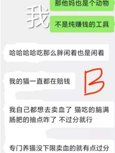 只不過同樣是賣貓血,這些貓舍卻覺得自己高人一等,説貓血販子沒下限。