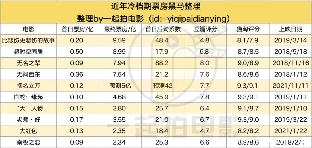 可以説,幾乎每一部冷檔期票房黑馬,在映前都不被看好。