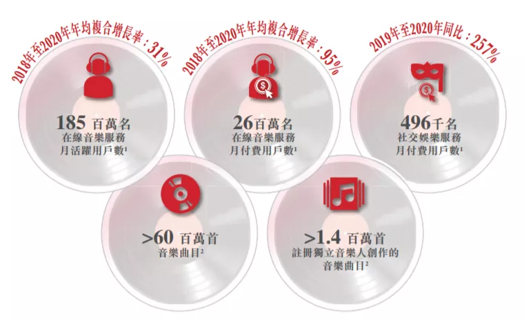 最新披露數據顯示,網易雲音樂業績持續保持快速增長。其營收增速、付費用户增速及在線音樂付費率均位居行業第一。2021年前三季度,網易雲音樂總營收51億元,同比增長52%;毛利率則大幅提升並轉正為0.4%;月活用户達到1.84億;在線音樂付費用户數2752萬,同比增長超93%;在線音樂付費率達14.9%。