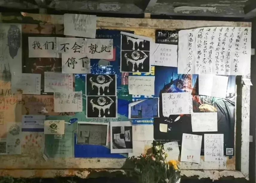 學生們不滿事情的處理結果,在校內公告欄上貼滿了海報和請願書。