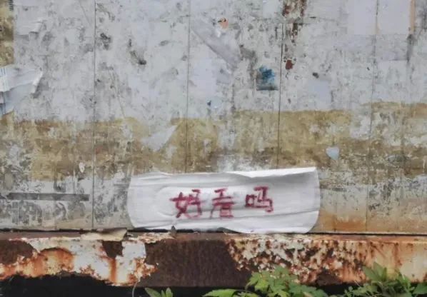 一片衞生巾上,寫着三個鮮紅的大字: