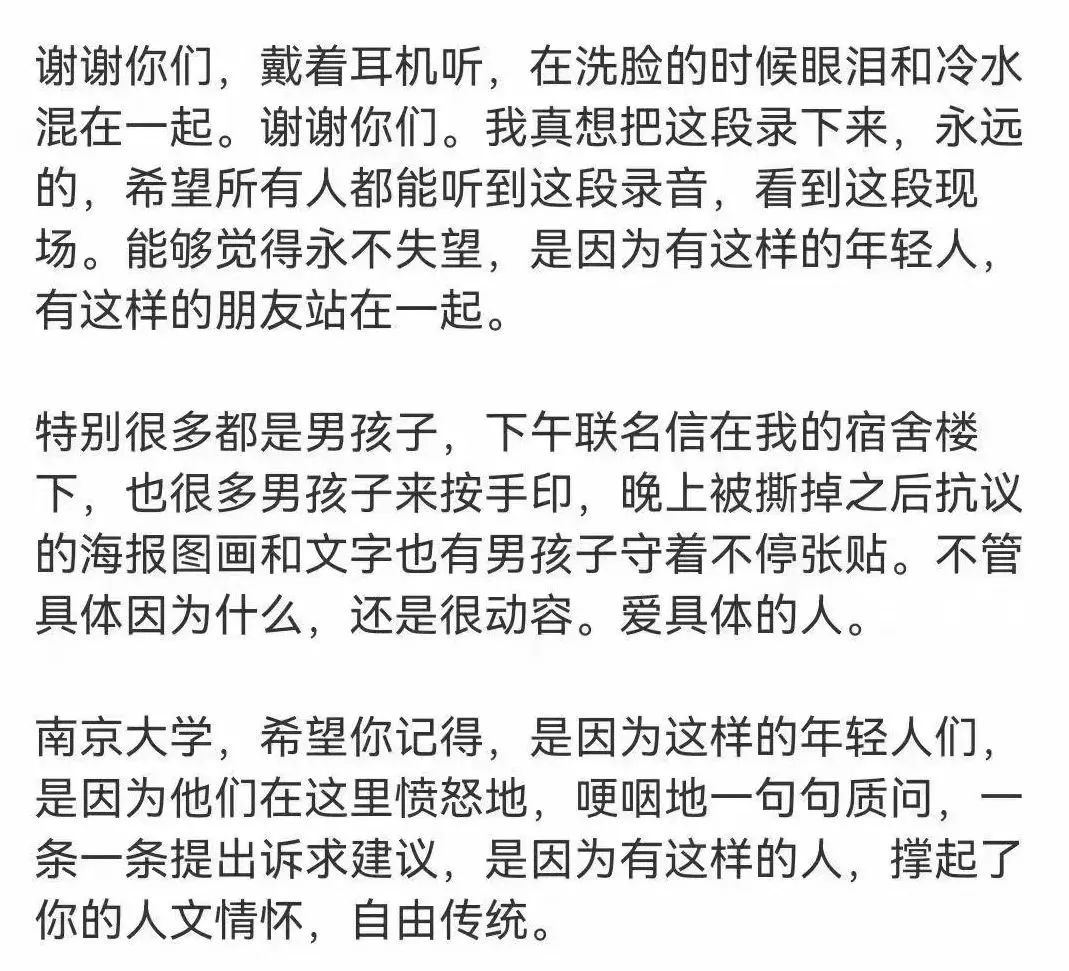 南大男生們説:“我們要保護所有南大女生的權益,維護所有南大男生的聲譽。”