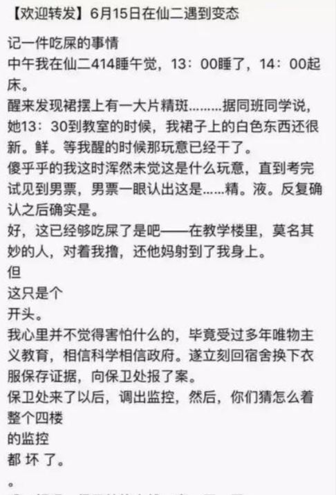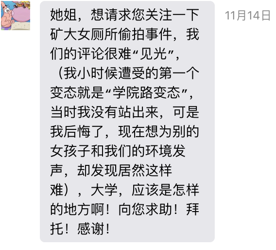 “求您關注一下某大學女廁所偷拍事件”。