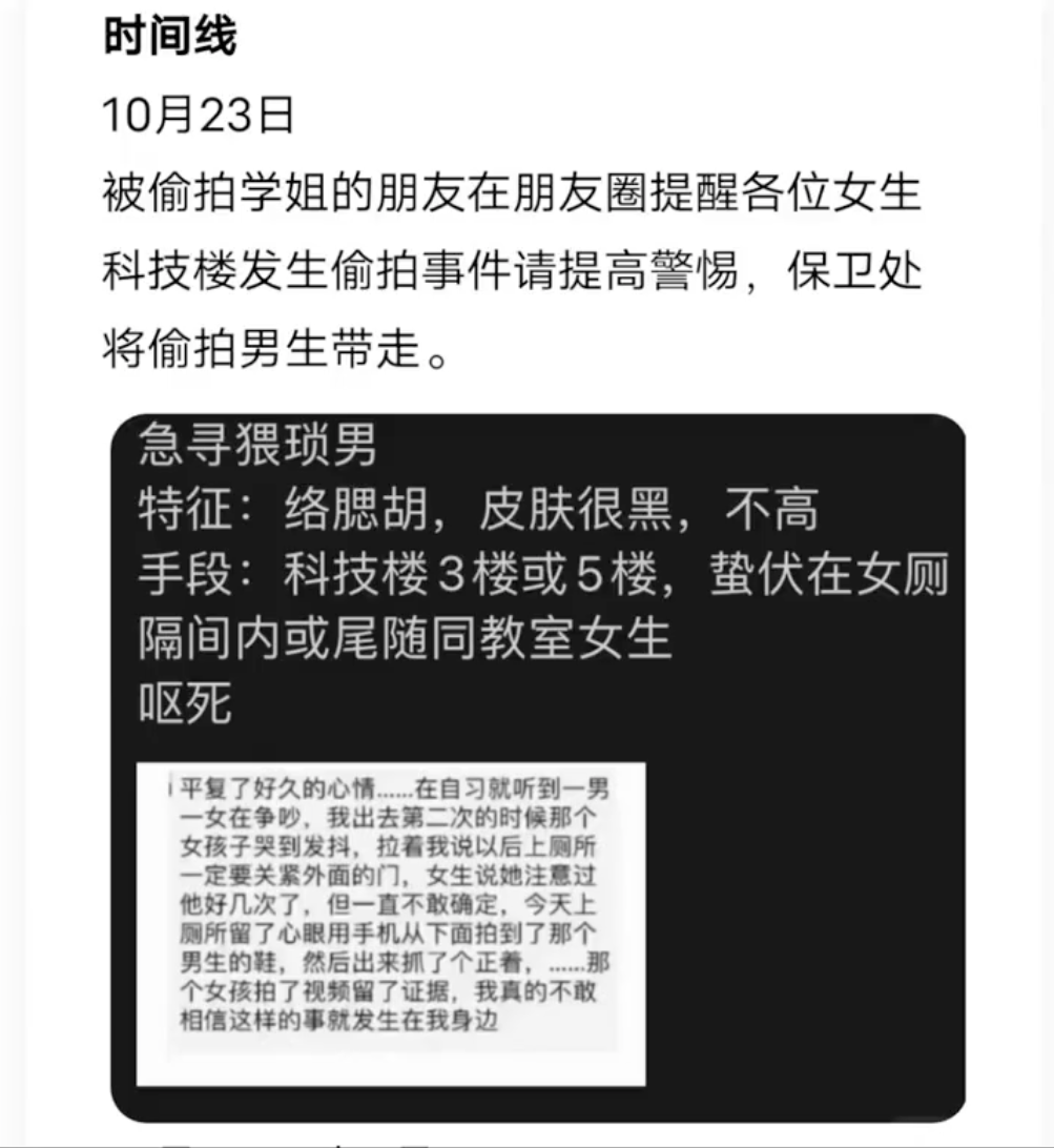 就拿10月11日發生在某大學的偷拍事件為例。