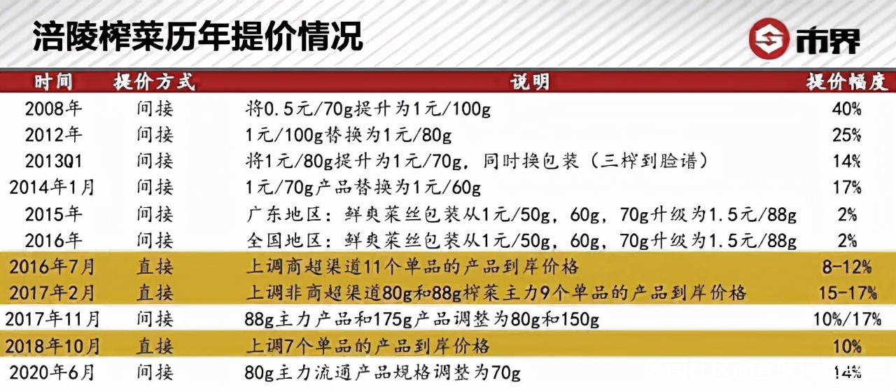 還別説,歷史上,涪陵榨菜真有過數次漲價抬升營收的成功案例