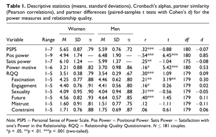 對181對異性戀伴侶的實驗結果表明,伴侶雙方感知到的個人權力與ta們對感情的評價呈正相關;對於在關係中所掌有的個人權力的滿意度與感情質量呈強正相關。截圖來自Körner, R., & Schütz A. (2021). Power in romantic relationships: How positional and experienced power are associated with relationship quality. Journal of Social and Personal Relationships, 25(1).