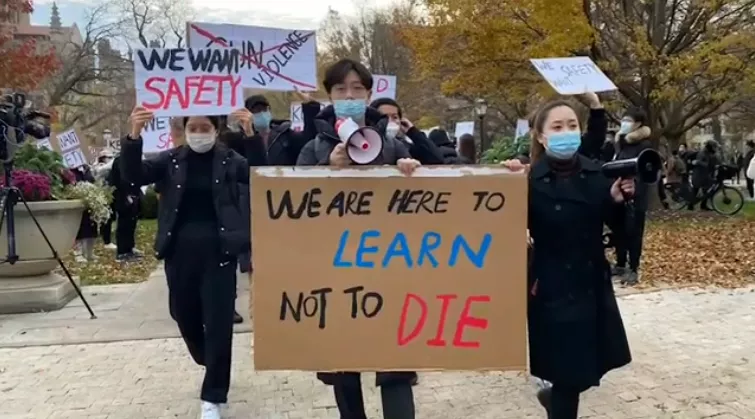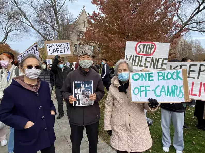 由約60位中國學生自主發起的這場集會遊行在芝大校園Main Quad舉行的集會響應熱烈,自發到場的各族裔學生、教職員從11時許持續湧入,現場不少同學舉着**“AM I NEXT?”(我會不會是下一個?)、WE WANT****SAFETY(我們要安全)**等的牌子……迫切希望校方及有關單位即時改善校園安全的心聲。