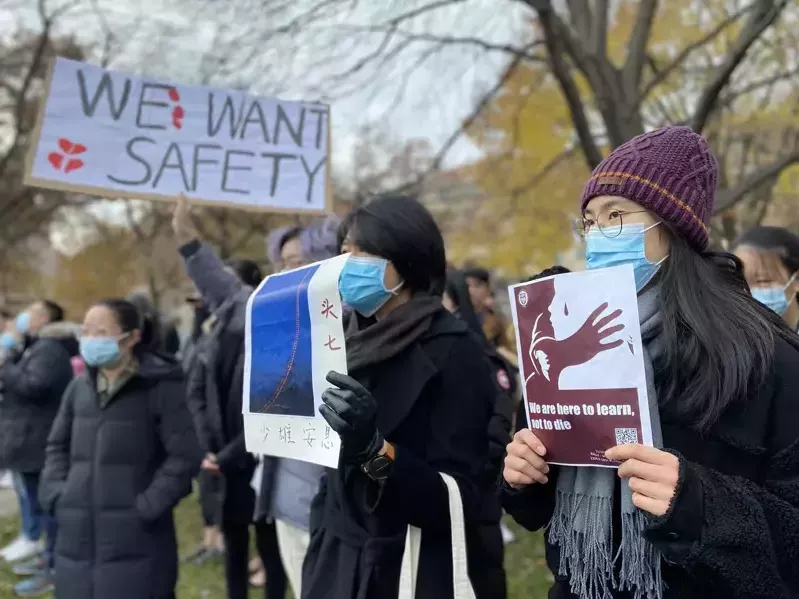 美國時間11月16日中午,由中國學生自發組織的“我們是來學習的,不是來死的”(We are here to learn, not to die)校園安全集會在芝加哥大學校園舉行。