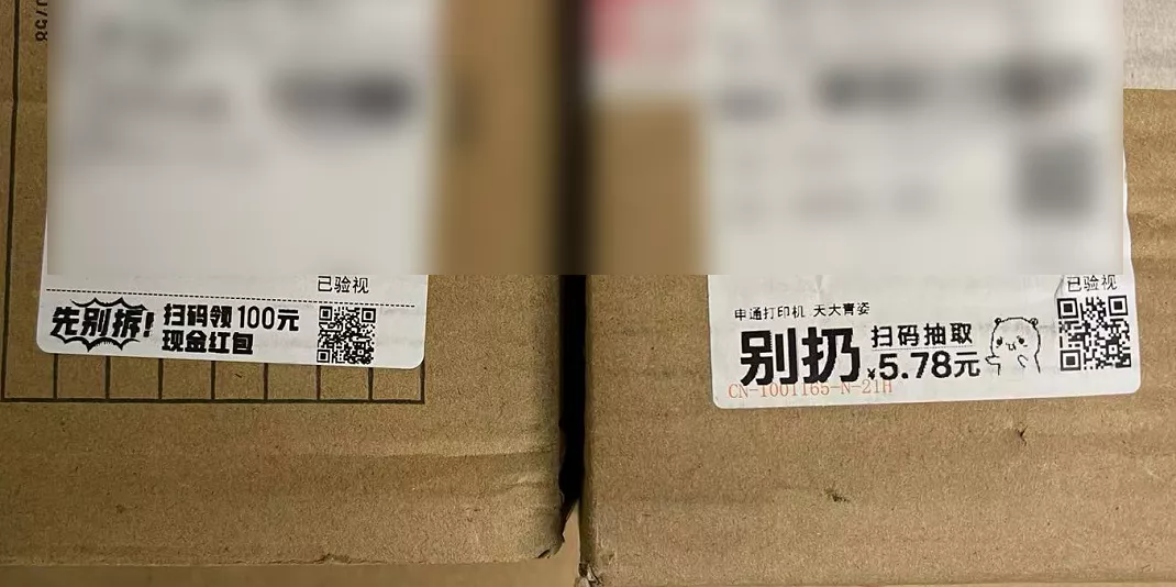 昨天差評君拆快遞拆正爽時,發現好幾張快遞面單上都有額外 “ 福利 ” ,比如掃碼送 100 元現金紅包,掃碼抽取 5.78 元 ↓ ↓