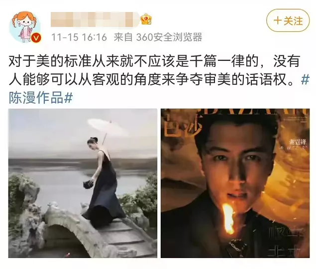 但有人替陳漫鳴不平,認為這只是審美差異,如果因為拍了幾張不符合主流審美的照片,就被扣上“辱華”的帽子,實在是太過上綱上線。