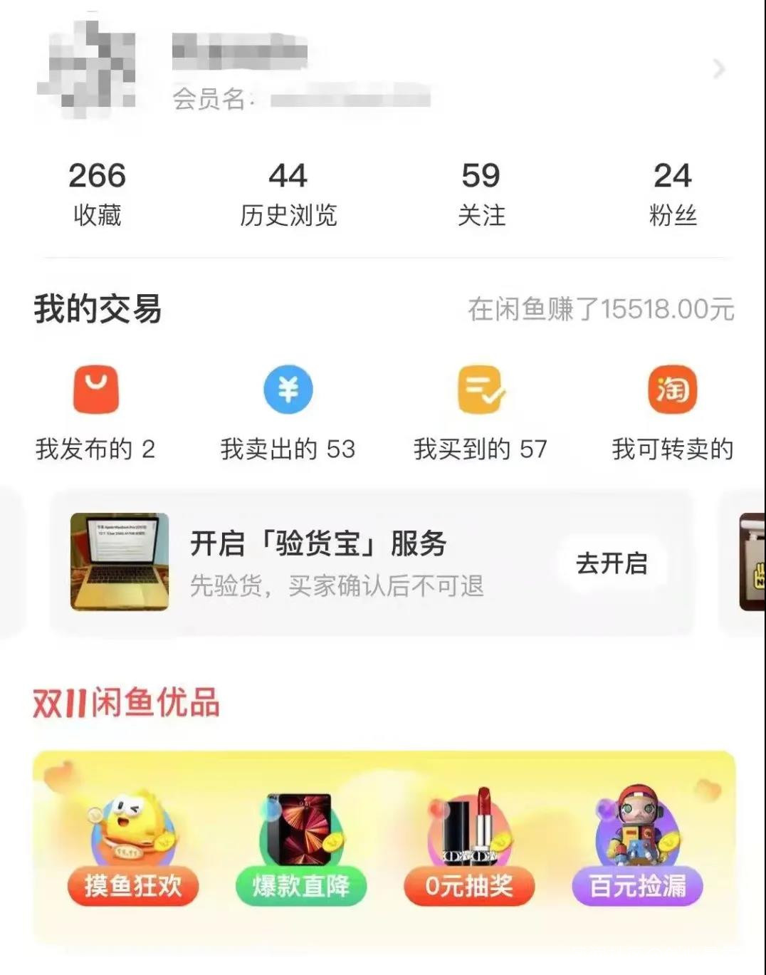 (圖 / 張喬已經在閒魚賣出53件商品,賺了1.5萬多元。)