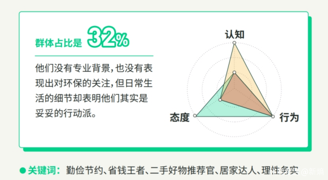 在2021年萬科公益基金會發布的《Z世代零廢棄生活報告》中,從認知、態度和行為三個維度觀察3201位中國低碳青年的行為顯示,低碳人羣中佔比最高的一類是省錢。