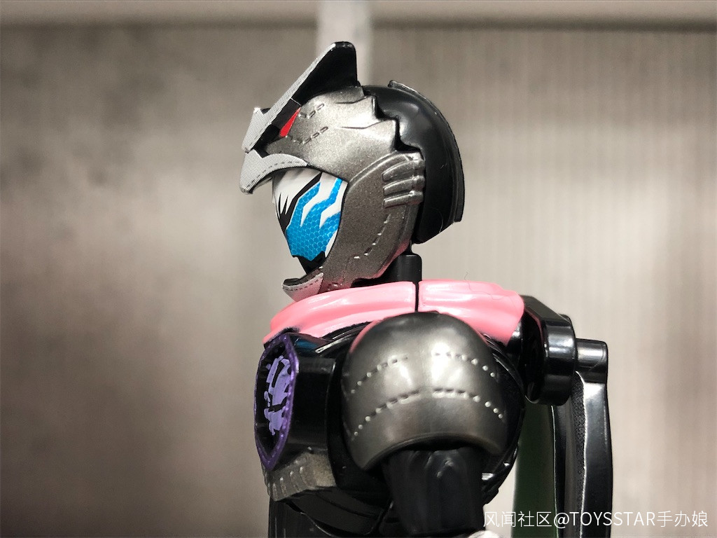這次假面騎士利維的胸部、肩部的金屬紫色採用塗裝再現,而臉頰部分的金屬紫和角部的白色也採用了塗裝處理。