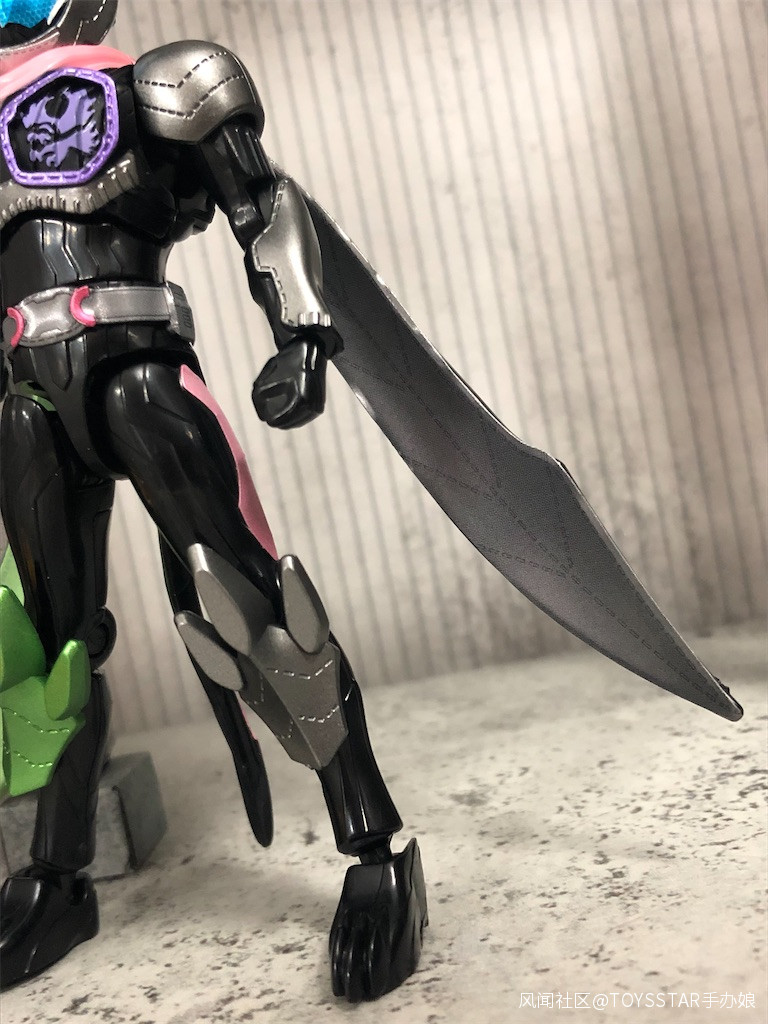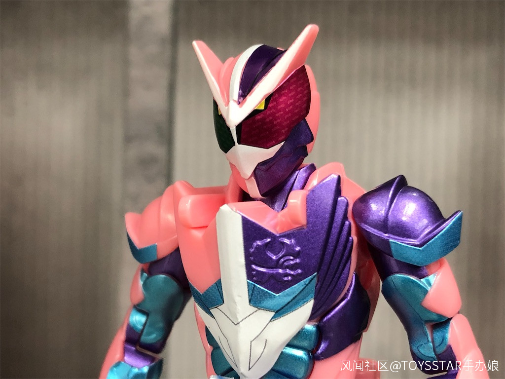 這次假面騎士利維的胸部、肩部的金屬紫色採用塗裝再現,而臉頰部分的金屬紫和角部的白色也採用了塗裝處理。