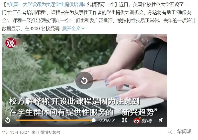 近日,“英國一大學設課為賣淫學生提供培訓”這一話題登上了微博熱搜。