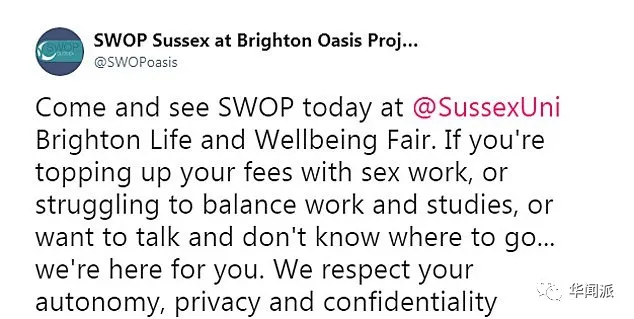 同樣是在2018年,薩塞克斯大學和布萊頓大學的學生會還在新生招聘會上推出了“薩塞克斯性工作者拓展項目”的攤位,並免費發放避孕套。