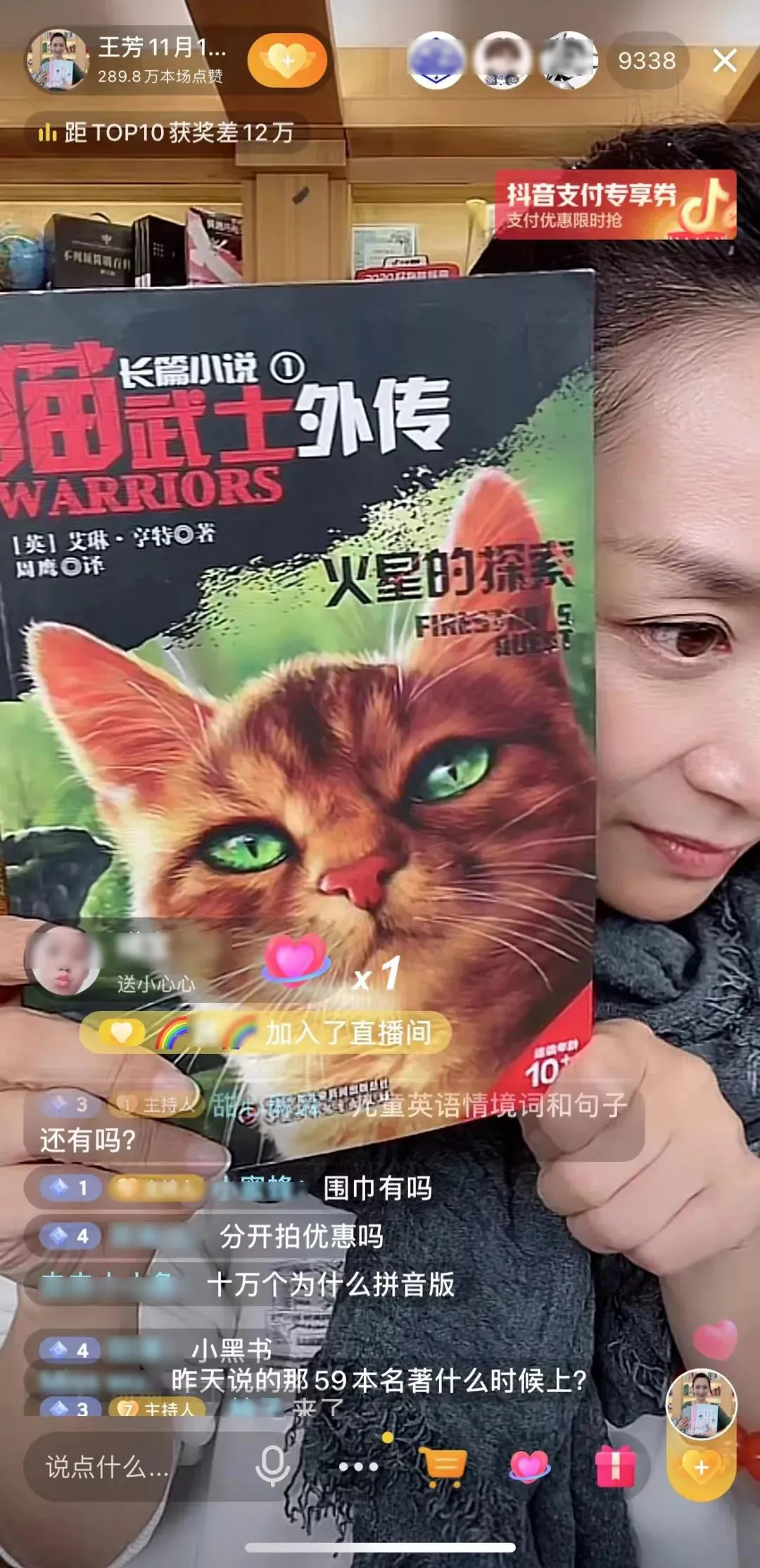 2020年以來,王芳開始在抖音電商上推售好書。作為養育四歲女兒的媽媽,王芬博覽羣書、口才過人,每週保持5期、每期6個小時的直播,温和理性的育兒觀、充滿誠意的讀書推薦,很快打動全網的學生和家長。開始的短短6個月裏,王芳賣出了1500萬冊書,九成粉絲有兩次回購。如今,王芳抖音號粉絲已經超過1200萬。