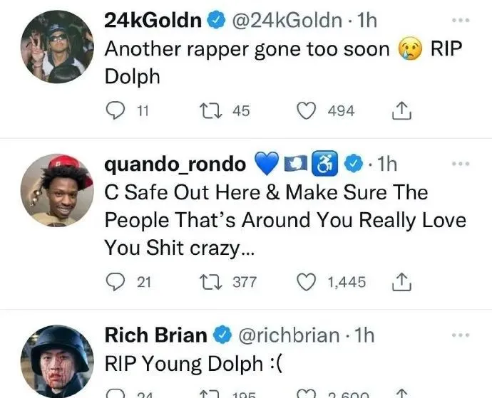 “又是一位説唱歌手這麼早就走了,R.I.P Dolph。”
