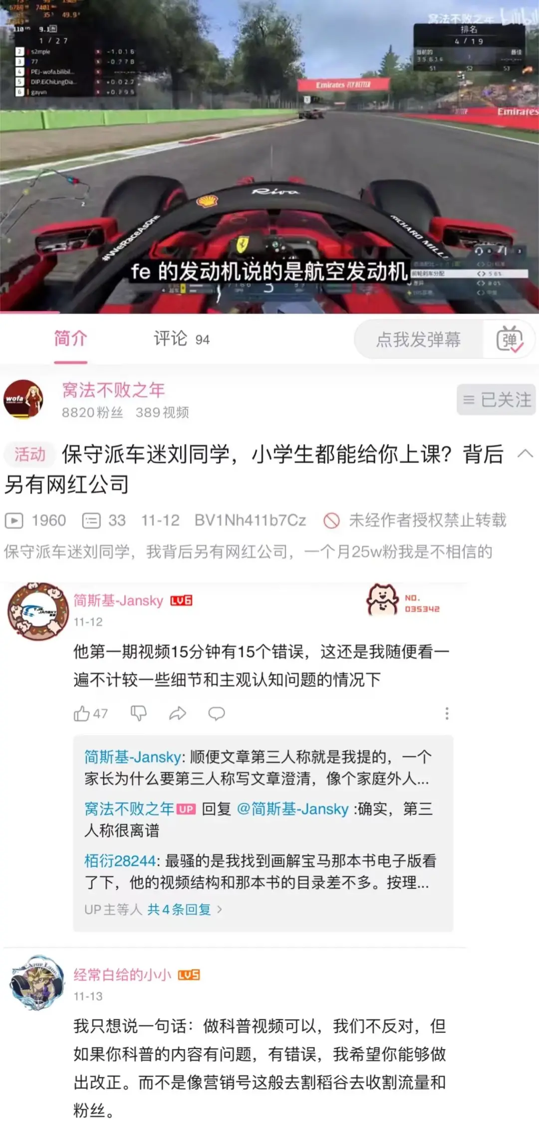▲UP主IBDeutsch針對保守派車迷劉同學B站視頻的糾錯