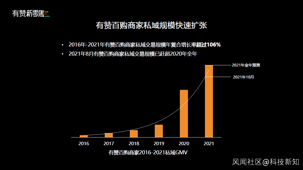 據關予介紹,在2016年-2021年期間,有贊百購商傢俬域交易規模年複合增長率超過106%。其中會員用户(含商家會員、私域粉絲和企業微信好友)貢獻的銷售額佔整體銷售的比例超過了63%,除此之外,會員用户平均每月的復購次數超過了3次,遠高於行業平均水平。