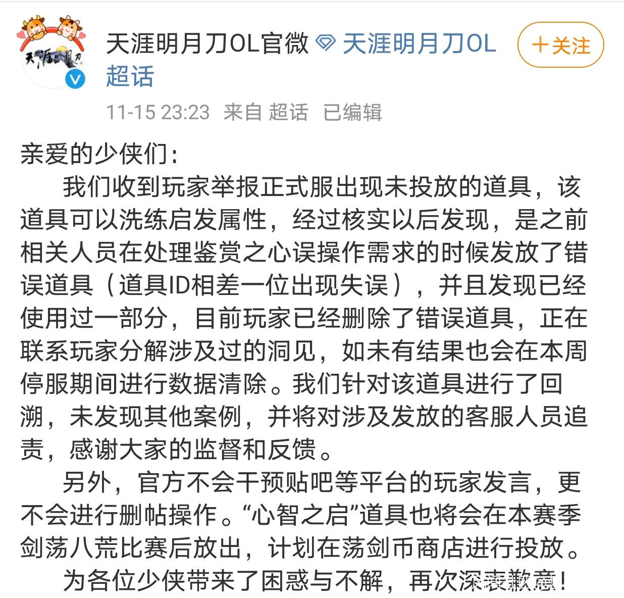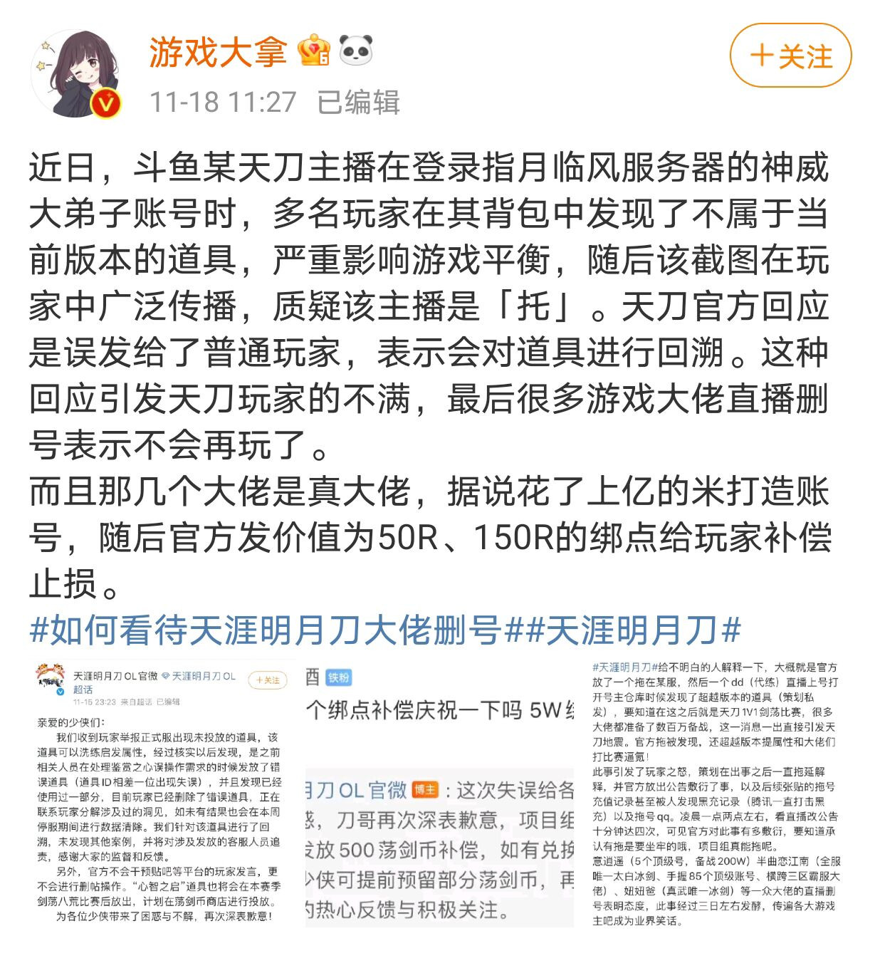 天涯明月刀主播疑似官方託,諸多大佬集體刪號,這波是什麼迷惑操作?_風聞
