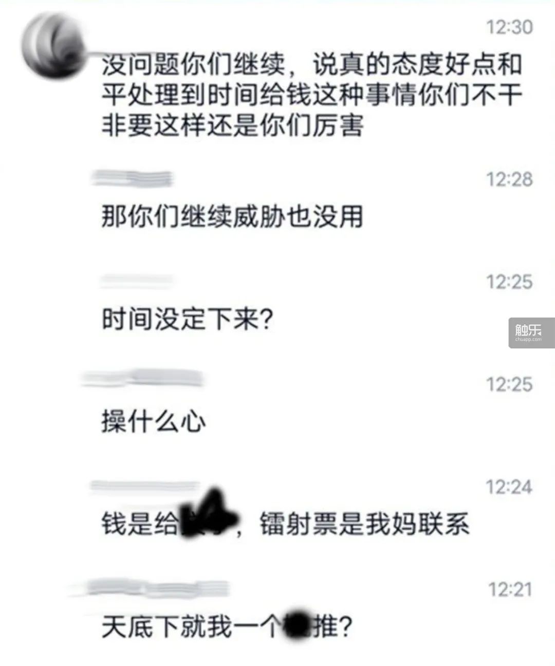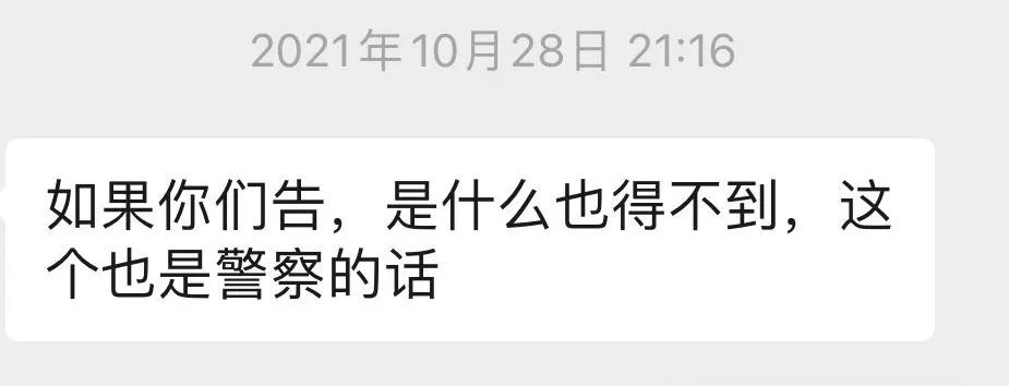 當得知團員們沒有報警後,團長母親的態度變得更強硬。她在微信裏聲稱,這件事必須私了,“如果你們告,什麼也得不到”,“這是警察原話”。