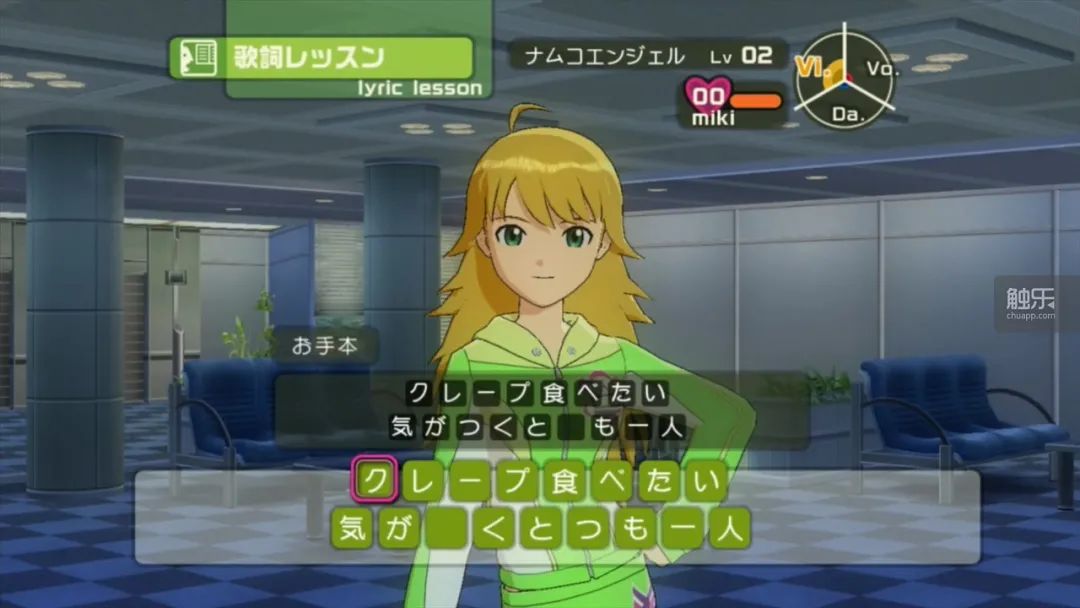 Xbox 360版《偶像大師》是一個模擬經營類遊戲,在遊戲中,作為製作人的玩家需要給偶像安排時間表,決定偶像該去上什麼訓練課、參與什麼外務工作,還要在選秀中幫助偶像獲得高分。這些系統我在《偶像大師:閃耀色彩》中已經見過了不少,所以多少還是有一些心理準備的。不過,初代的某些奇怪的小遊戲還是讓我花了點時間才適應——比如歌詞練習中,玩家需要逐字對比兩行歌詞,找到其中順序錯誤的字進行調換。沒想到玩《偶像大師》還要拼眼力!