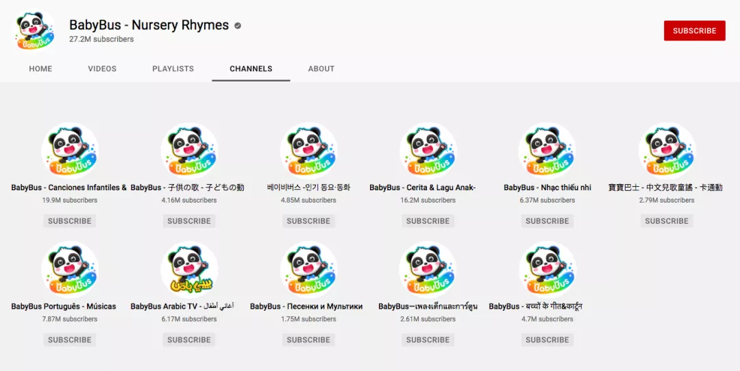 擁有1640萬YouTube粉絲的李子柒已成為中國內容出海的代表。但很多人不知道,在中國的內容出海領域還有這樣一家神奇的公司——寶寶巴士。它用兒童啓蒙動畫征服了不少海外小朋友:YouTube主頻道粉絲數突破2700萬,12個YouTube頻道共攬下1億多粉絲量。