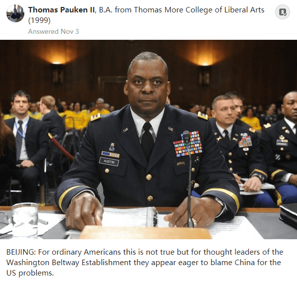 北京:對普通美國人來説,這不是事實,但對華盛頓權勢集團(Washington Beltway Establishment)的思想領袖來説,他們似乎急於將美國的問題歸咎於中國。