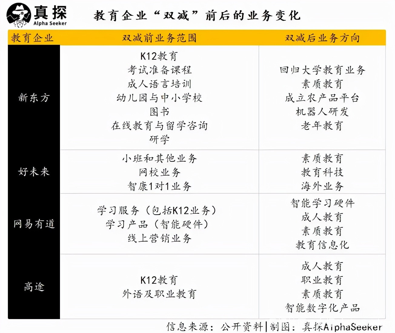 事實上,在“雙減”地震之後,各個教育企業都沒有坐以待斃,而是想方設法地“在絕望中尋找希望”,謀求轉型發展。