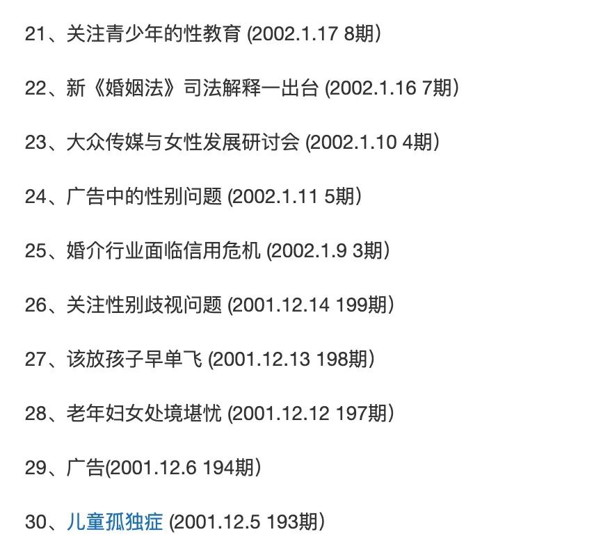世紀之交的時候,節目特地創辦了《我們的一百年》專題,足足用了20集,來回顧「一百年來中國女性從身體到精神、從非人到女人到人的經歷」。