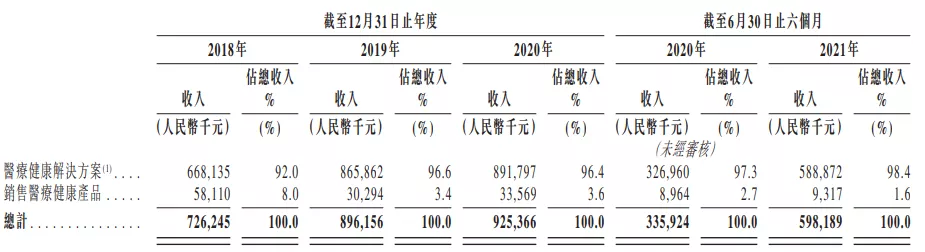 於往績記錄期間,固生堂提供醫療健康解決方案產生的收入主要包括醫療費,例如客户通過自付、國家報銷計劃和商業醫療保險保單支付的諮詢費、藥費、手續費及理療費。截至2018年、2019年及2020年12月31日止年度以及截至2021年6月30日止六個月,公司提供醫療健康解決方案所產生的收入分別為人民幣(下同)6.68億元、8.66億元、8.92億元及5.89億元,分別佔同期總收入的92.0%、96.6%、96.4%及98.4%。