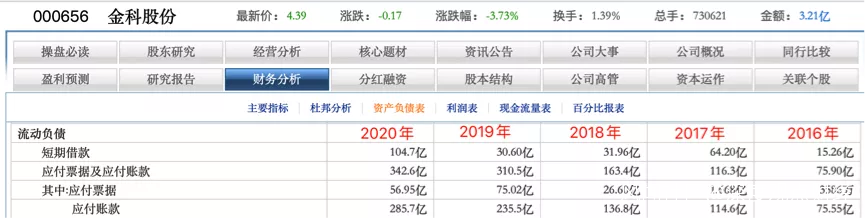 從2016年至2020年,金科應付票據從3586萬增至56.95億元,應付賬款也從75.55億元增至285.7億元。