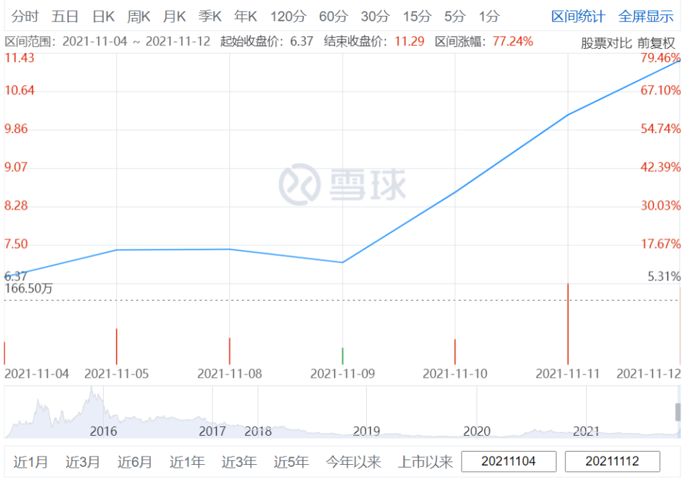 而這套理論給中文在線長期未見起色的股價注入一劑強心劑。截至11月12日收盤,中文在線股價報11.29元,較11月4日收盤的6.37元實現明顯增長,區間漲幅達77.24%。