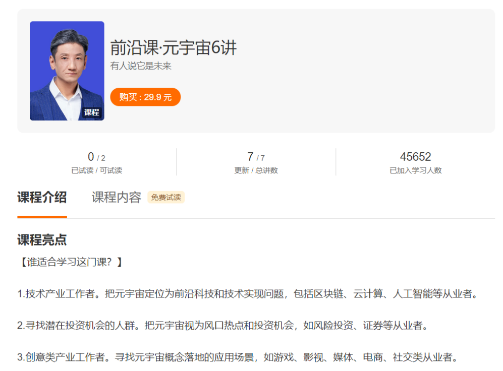 在玩家抓耳撓腮思考元宇宙怎麼落地時,“羅胖”已經掙到錢了。截至11月11日,得到APP上的《元宇宙6講》網課預估總營收已超過100萬元。