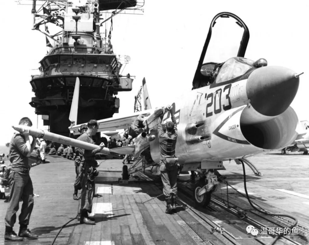 > 8月2日當天,“提康德羅加”號艦員正在給F-8掛載“祖尼”火箭彈