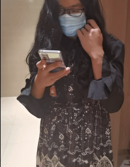 裏面的人打開門之後看着果然很詭異,這個人身材高大,戴着帽子、口罩、長長的假髮,穿着裙裝,很輕易就能看出來是男扮女裝潛入進來的。