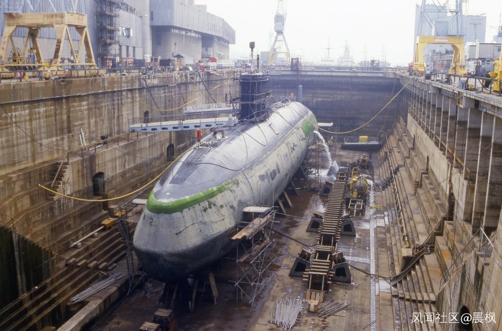 “柯林斯”級在建造中,能看到單層殼,艇脊的非耐壓罩還沒有加上去,但能看到圍殼底部留出的安裝位置
