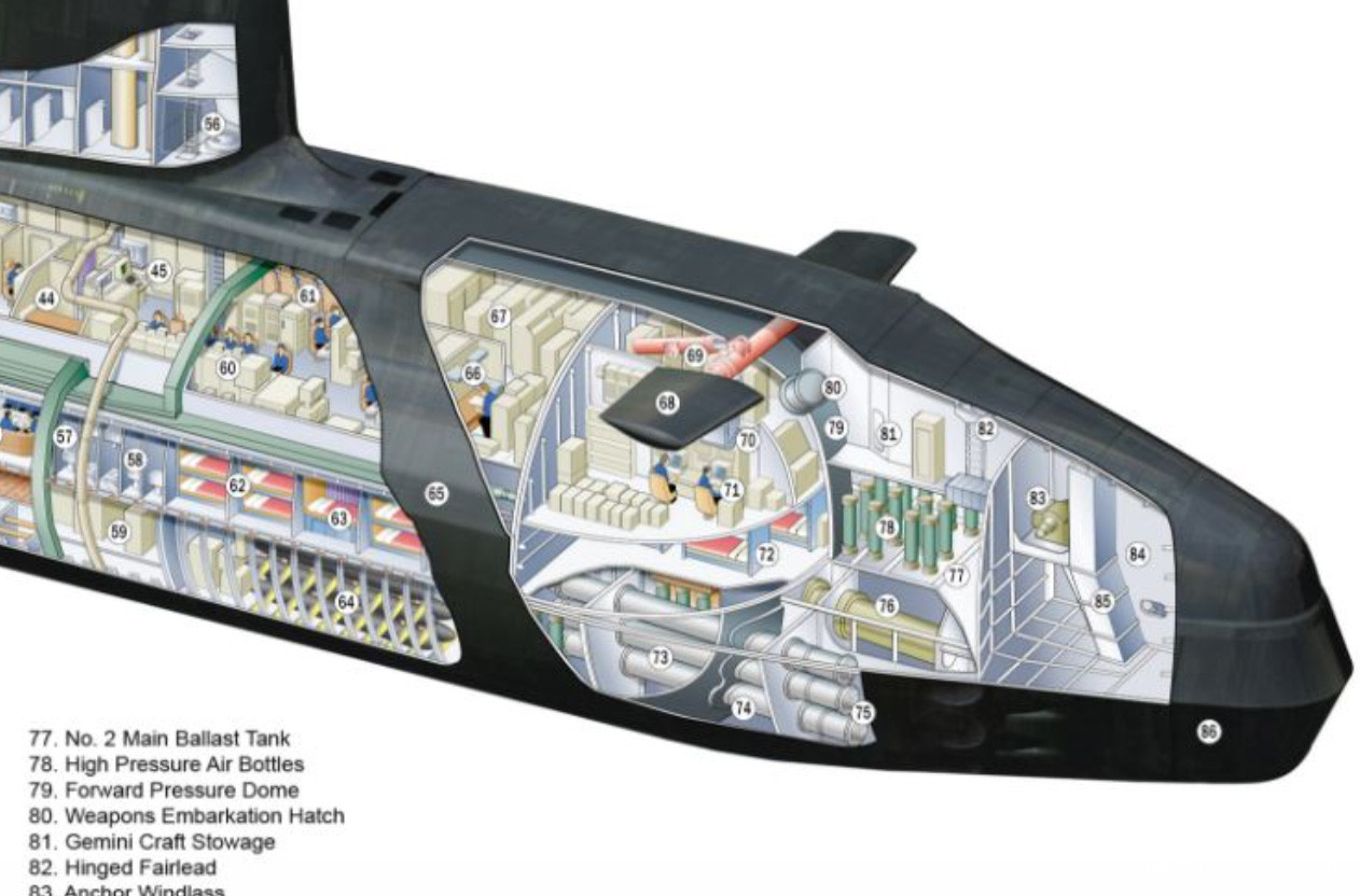 特種部隊人員和小型潛航器也可以從艇艏的多用途出入口(Multi-Mission Portal)進出
