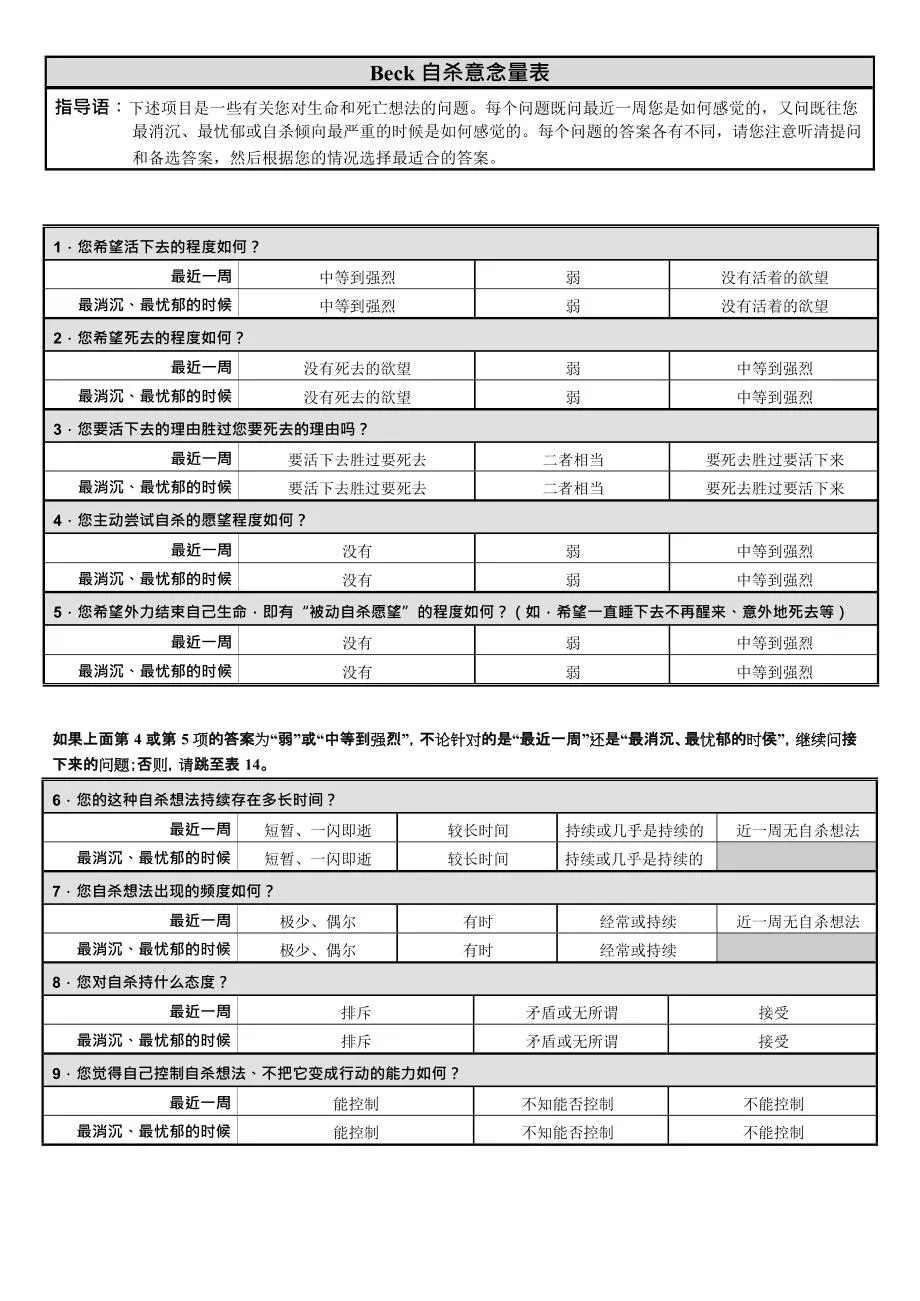 還有家長查詢了心理專業資料,指出該問卷不恰當地引用了《Beck 自殺意念量表》,認為該問卷的目標人羣是有自殺風險的病人。