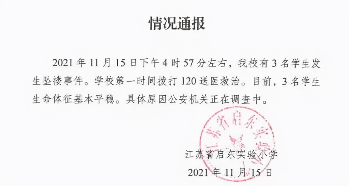 就出現了江蘇啓東實驗小學三名小學六年級學生跳樓事件。